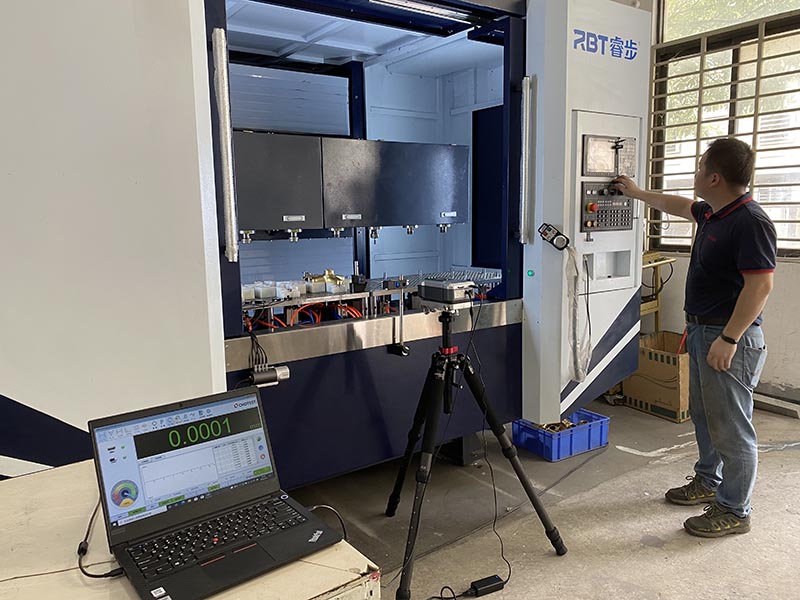 6. X/Y/Z ekseni kılavuz rayları ve vida çubukları, eksenel çalışma doğruluğunu sağlamak için hassas bir köprü cetveli ve kadranlı gösterge ile kurulur ve kalibre edilir.
